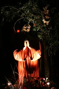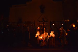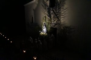 La prima mezz’ora circa del percorso processionale, fin quando non ha inizio l’alba, si svolge con le luci pubbliche spente e con le strade limitrofe alla parrocchia illuminate dal chiarore delle candele portate in processione dai partecipanti.