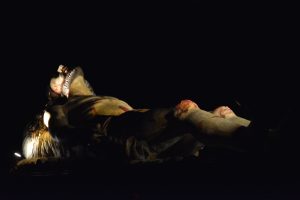 In questo tragitto, solitamente lungo circa 500 metri, la banda esegue, per tradizione, due opere musicali locali: “Dolore di madre” composta nella metà del ‘900 dal maestro coratino Pasquale Vilella e “Pensiero funebre” composta, sempre nel secolo scorso, dall’illustre maestro, coratino di adozione, Raffaele Miglietta. Durante il “percorso a luci spente” tutti i confratelli e i devoti-portatori si coprono nuovamente il viso con la buffa in segno di penitenza.