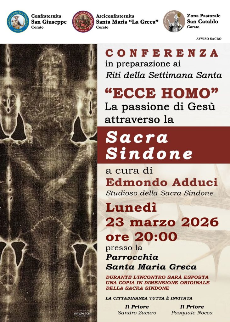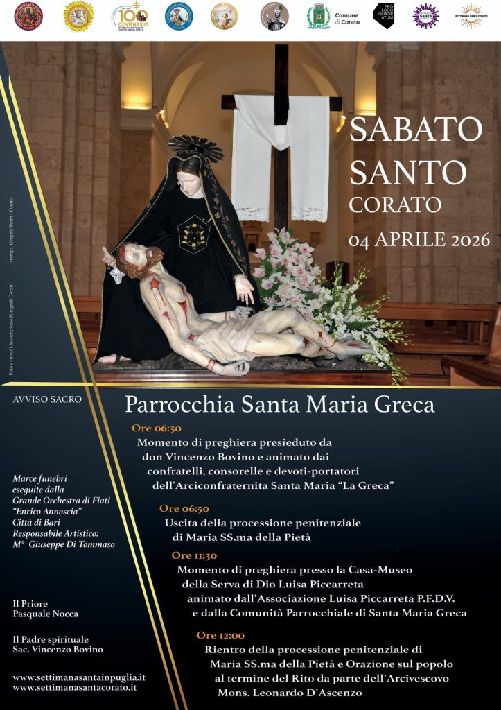 Un sentito ringraziamento a Elisa Arbore per le foto dei riti della Settimana Santa a Corato, che catturano l’essenza di questa tradizione e arricchiscono il nostro sito.